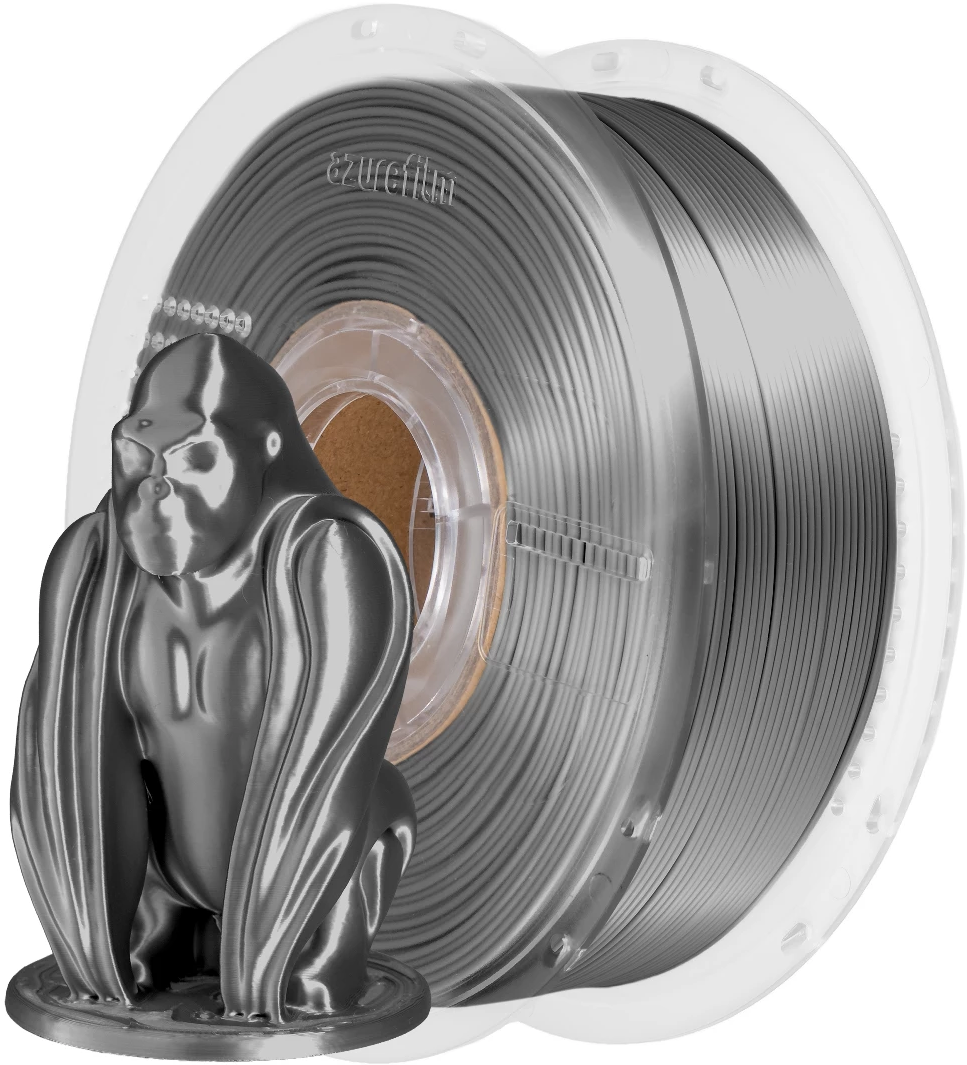O PLA Silk da AzureFilm é um filamento de seda fácil de imprimir que produz efeitos de cor extraordinários com um aspeto aveludado e um acabamento brilhante. Com as propriedades habituais do PLA e um ótimo aspeto, o material é adequado para imprimir elementos decorativos como vasos, estatuetas, acessórios ou eletrodomésticos.