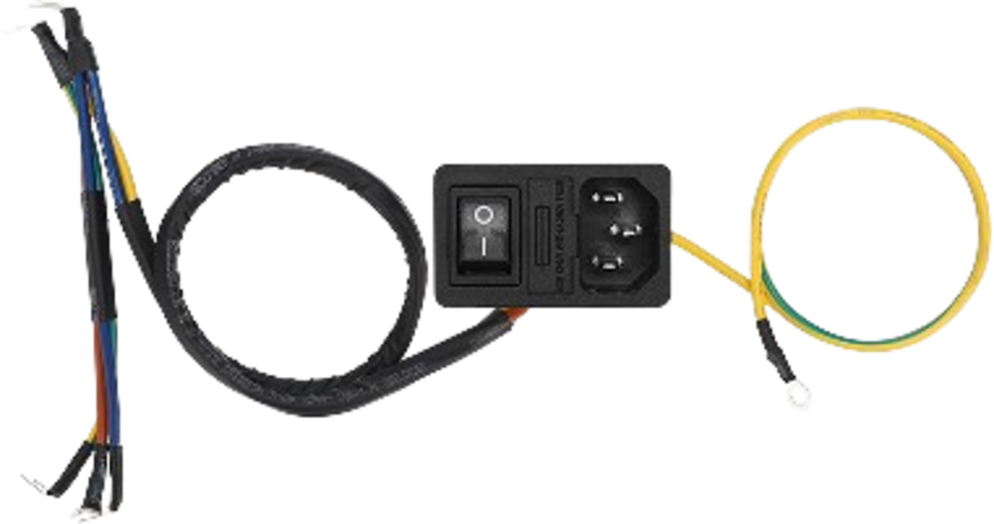 A Bambu Lab Power Switch Assembly encontra-se na parte traseira da impressora e combina o interruptor principal, a entrada de alimentação e toda a cablagem numa unidade compacta e robusta. Liga a fonte de alimentação, a placa de corrente alternada (AC) e a ligação à terra, garantindo um fornecimento de energia estável e seguro para todo o sistema.