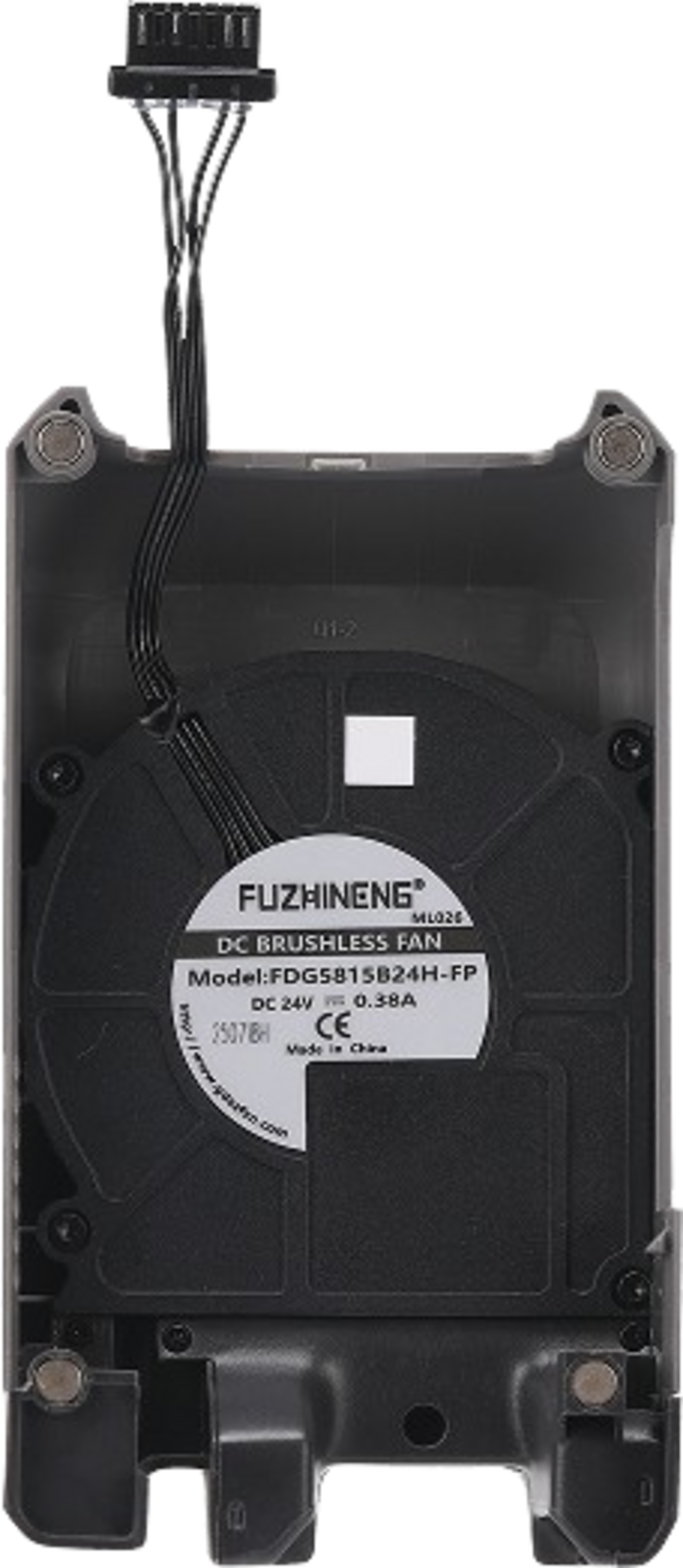 A Bambu Lab Toolhead Front Cover Assembly é composta pela tampa frontal e pela ventoinha de arrefecimento da peça (part-cooling fan). É fixada de forma segura ao Toolhead Middle Frame através de ímanes, permitindo um acesso rápido e sem necessidade de ferramentas. Este conjunto assegura uma refrigeração eficiente das peças impressas e protege simultaneamente os componentes frontais do cabeçote de impressão.