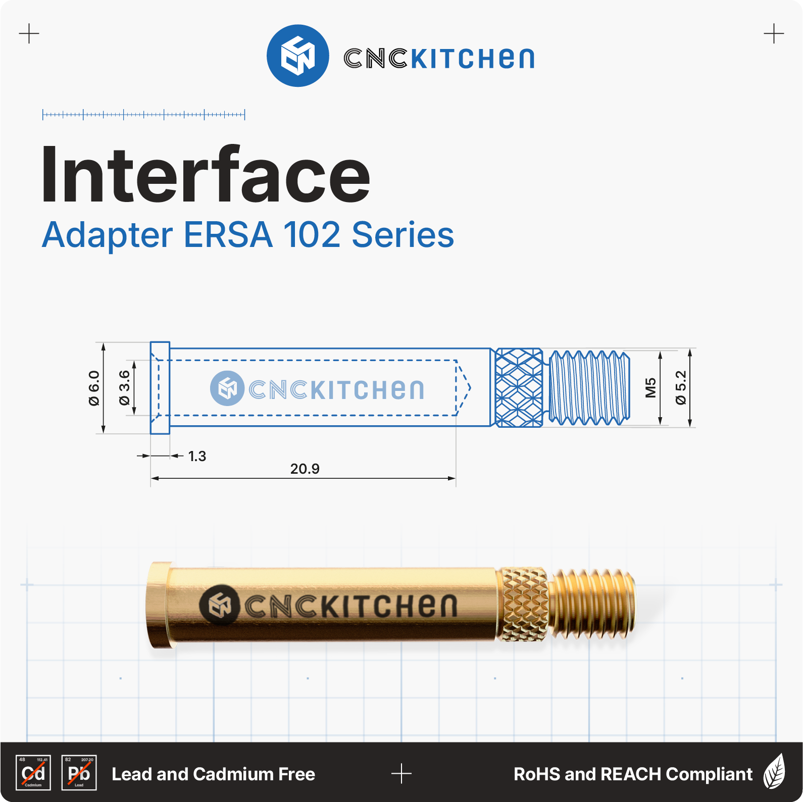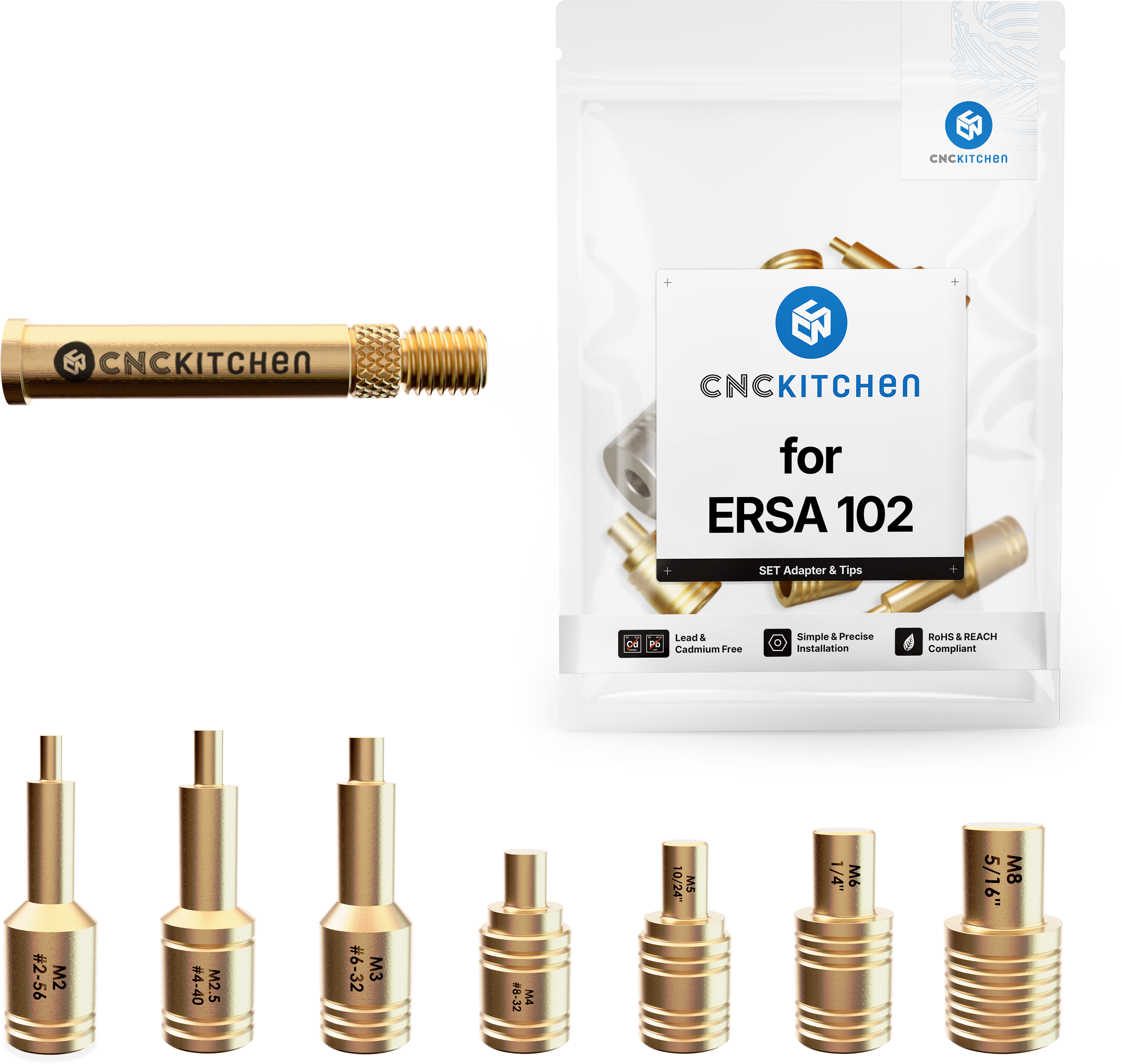 As pontas de soldadura são compatíveis com os ferros de soldar ERSA i-Tool, i-Tool Nano e i-Tool Pico e são perfeitamente compatíveis com os insertos roscados CNC Kitchen. Têm marcações a laser e entalhes para facilitar a etiquetagem do tamanho. Em conformidade com REACH.