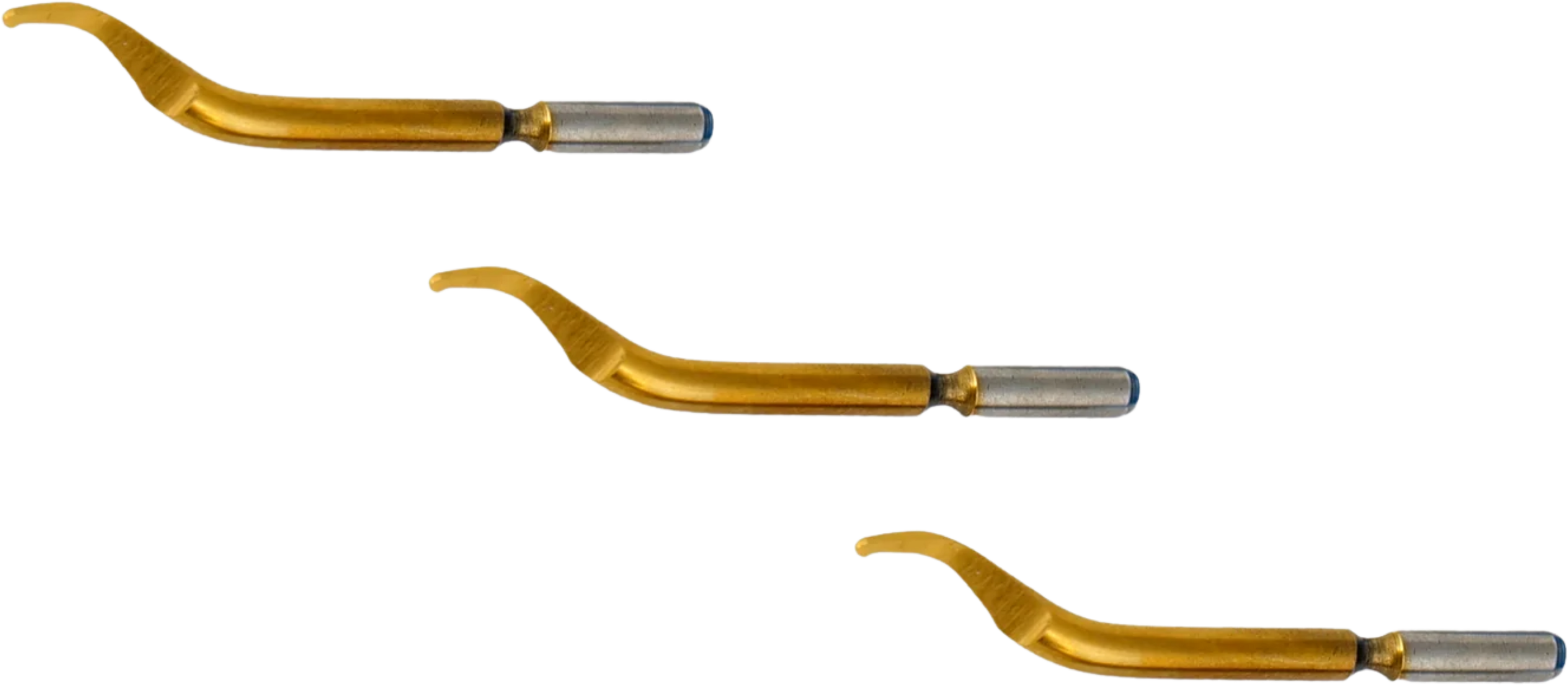 As CNC Kitchen Ersatzklingen são lâminas de precisão de alta qualidade, revestidas a titânio, para um rebarbamento fiável e limpo de diversos materiais. O revestimento garante uma resistência ao desgaste particularmente elevada e uma longa vida útil, mesmo em aplicações exigentes.