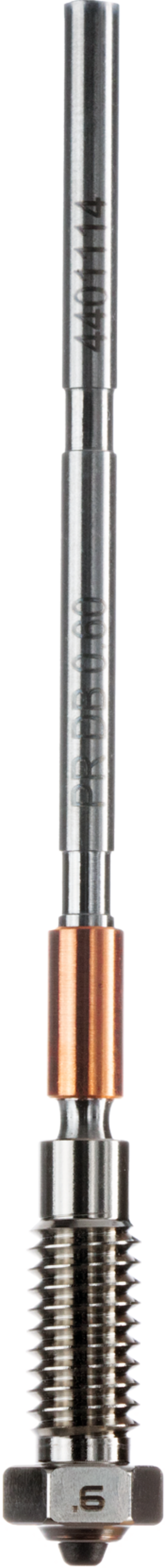 A ponta PCD é composta por milhares de pequenos cristais de diamante ancorados em uma matriz especial com ligações diamante-para-diamante. Este design combina a dureza do diamante com uma fragilidade reduzida, tornando os bicos ideais para impressão com filamentos técnicos exigentes, como combinações de metal ou cerâmica.
