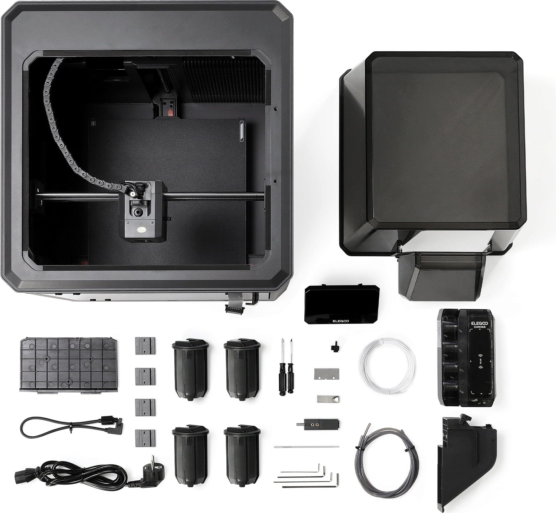 O Elegoo Centauri Carbon 2 Combo combina funcionalidade multicolor, grande diversidade de materiais e tecnologia de impressão precisa num impressor 3D de alto desempenho. Com sistemas inteligentes de gestão de filamento, controlo de temperatura e calibração, o Centauri Carbon 2 destina-se a quem espera resultados limpos, operação simples e máxima flexibilidade!