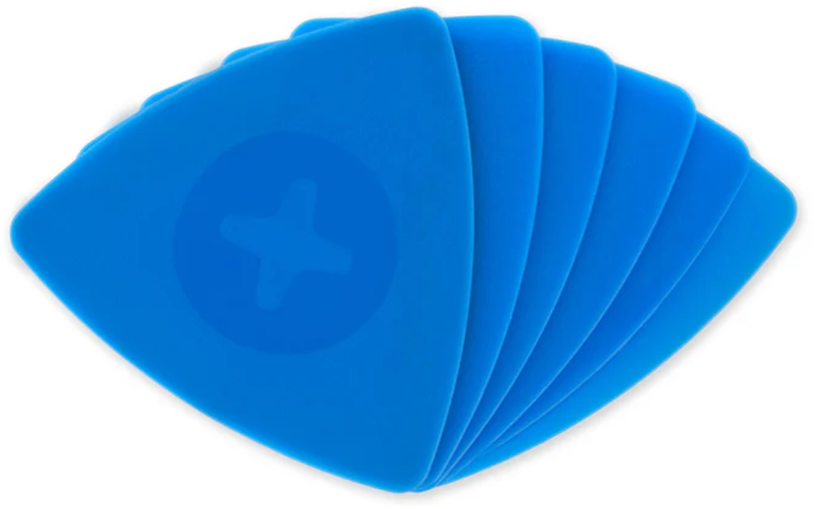 Estas palhetas de alta precisão podem ser usadas de forma flexível – seja para alavancar, deslizar ou separar componentes colados. Graças à sua forma plana, são também perfeitas para serem conduzidas ao longo das bordas da caixa em maiores distâncias. Fabricadas em plástico resistente, as Opening Picks são duradouras e reutilizáveis. E sim – quando não há nenhum dispositivo na mesa, também funcionam na perfeição como “palhetas de air guitar”.