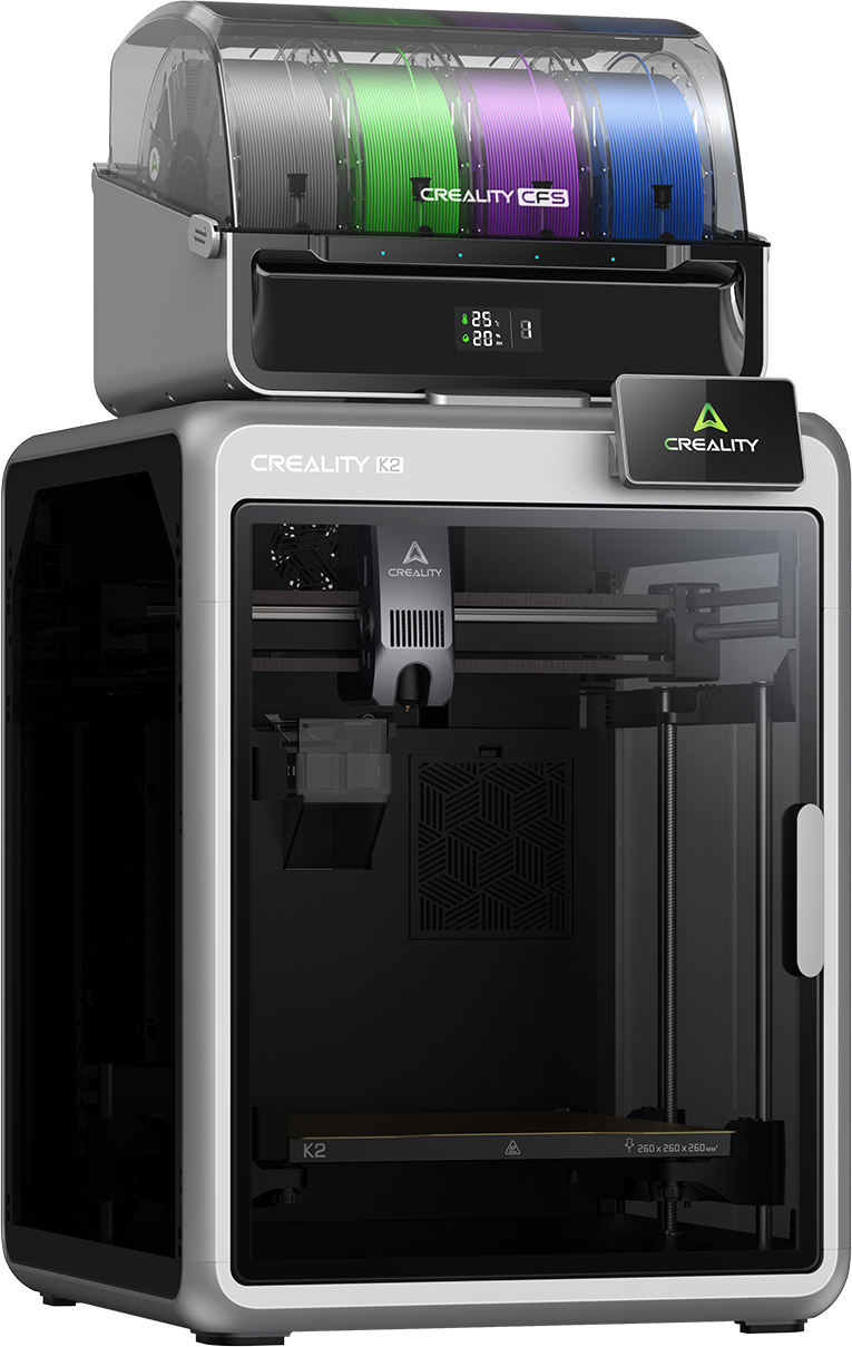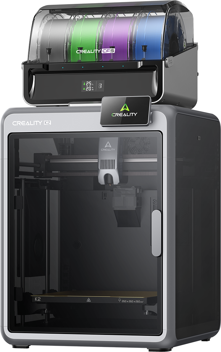 A Creality K2 Combo é A solução para quem quer não só imprimir de forma rápida e precisa, mas também realizar modelos em várias cores ou materiais ao mesmo tempo. É possível combinar até quatro unidades CFS – para até 16 cores – totalmente automático, com controlo inteligente e integração perfeita no software!