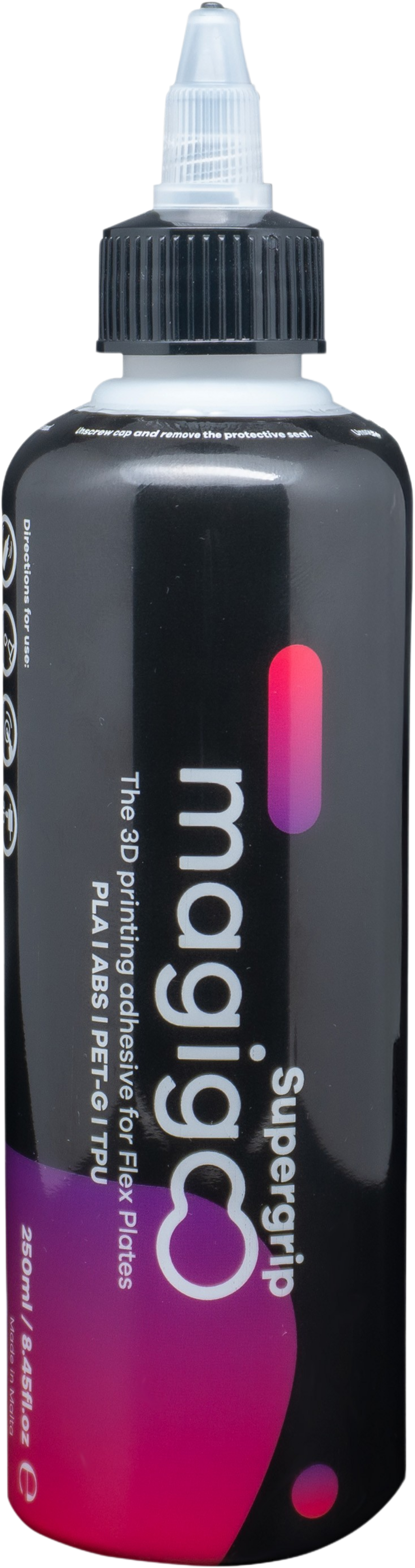 Magigoo Glide Supergrip é um adesivo potente para bases de impressão 3D, desenvolvido especificamente para placas de impressão flexíveis e à base de polímeros. É adequado, entre outros, para superfícies PEI (lisas e texturizadas), PC, Satin Sheets, bem como outras placas de engenharia revestidas. A formulação foi concebida para gerar uma aderência elevada e uniforme, sem sobrecarregar nem danificar desnecessariamente a superfície.