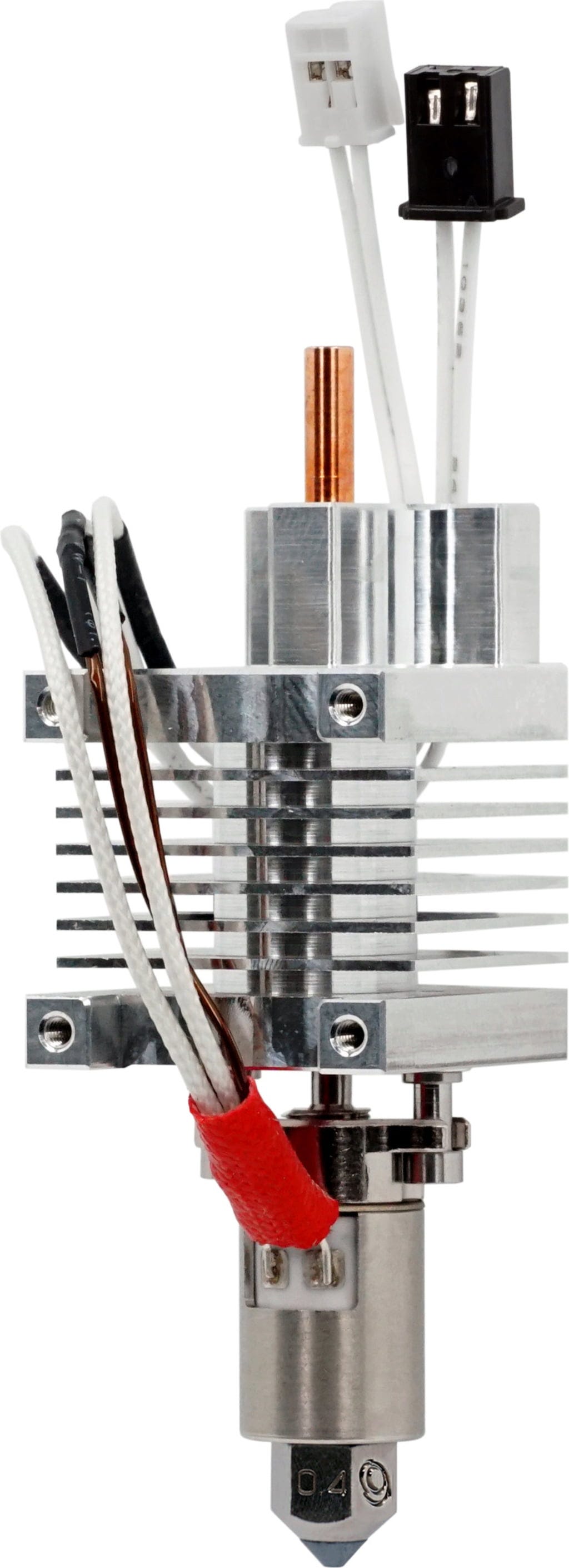 O hotend está equipado com um termístor NTC e suporta temperaturas até um máximo de 300 °C.