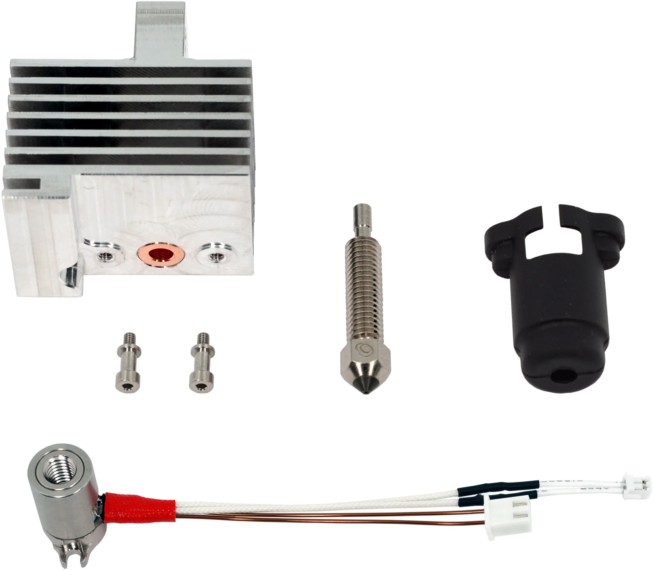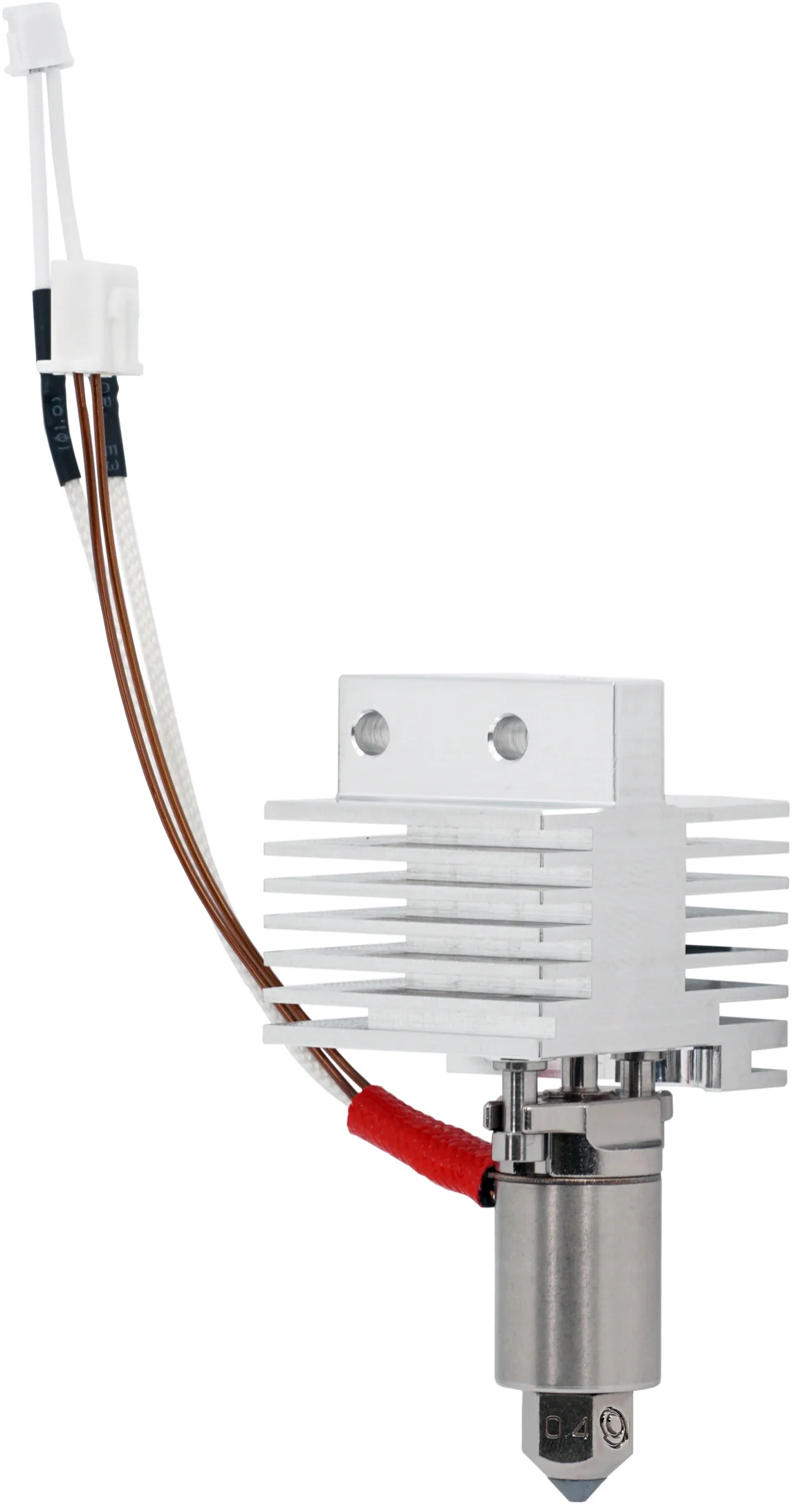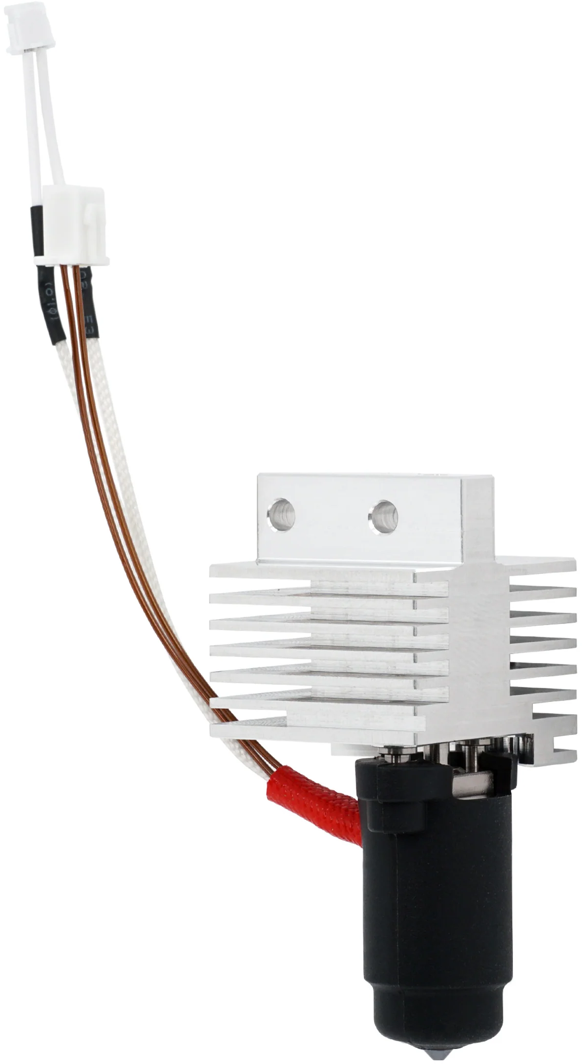 O hotend dispõe de um termístor NTC e suporta temperaturas até um máximo de 300 °C.