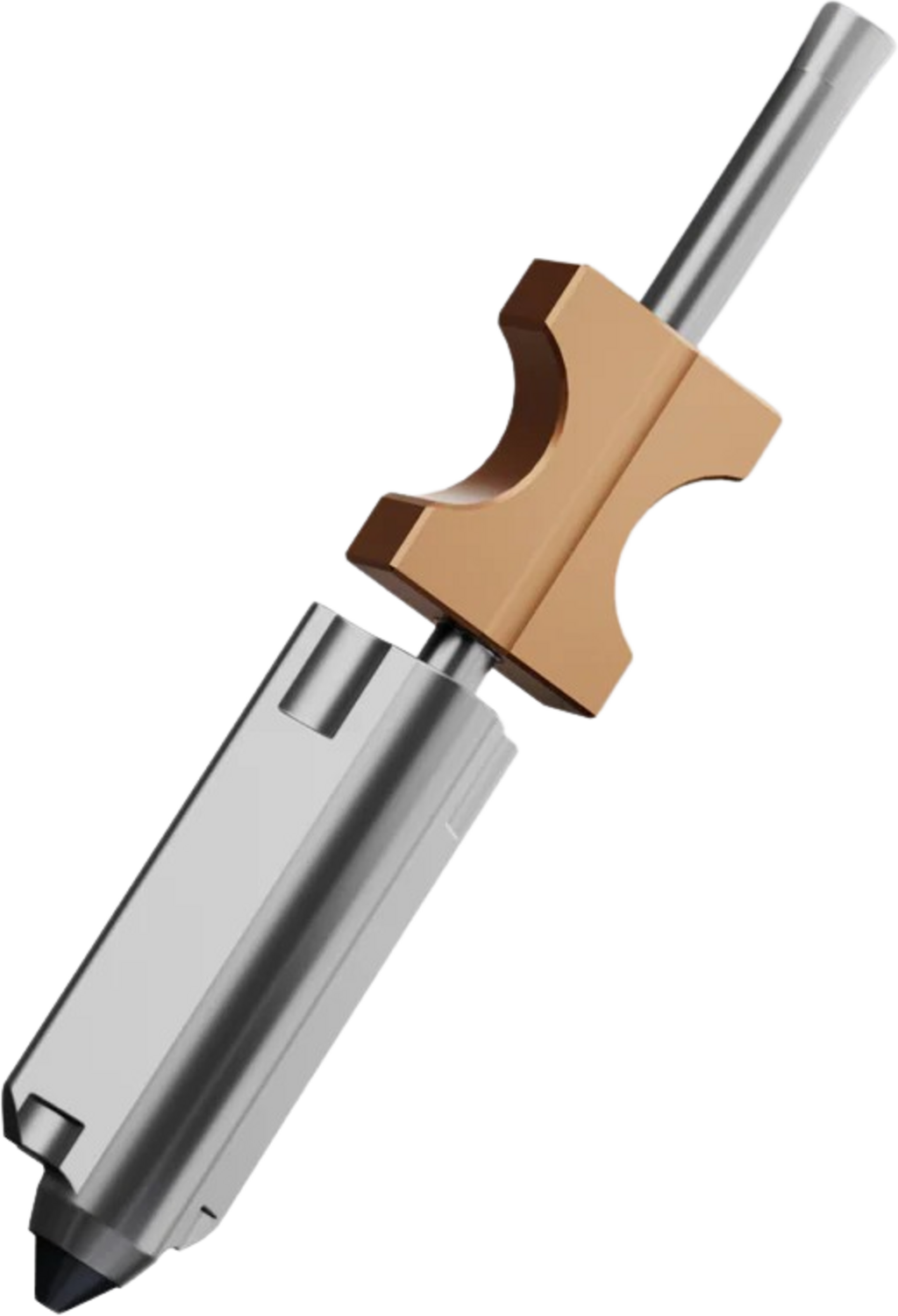 O bico é feito de carbeto de silício altamente condutor e resistente ao desgaste, atingindo uma dureza de 9,8 na escala de Mohs. Assim, dura até 7 vezes mais do que os bicos convencionais em aço endurecido. Perfeito para filamentos abrasivos como CF, GF ou compósitos especiais.