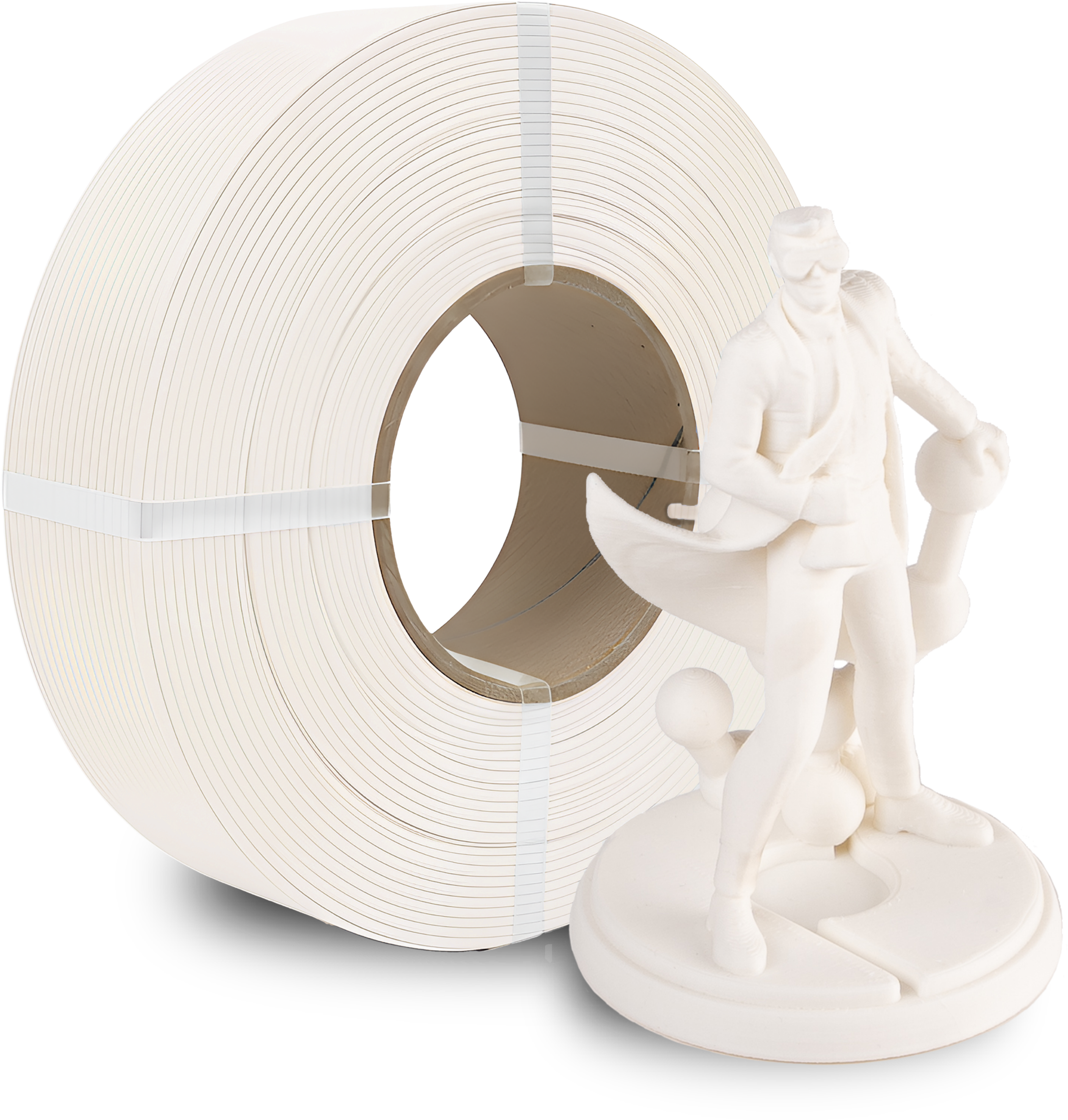 Os Polymaker Refills consistem em filamento enrolado de forma precisa, sem bobina rígida. Foram concebidos para serem utilizados com uma Master Spool reutilizável. A Polymaker disponibiliza um ficheiro STL da sua própria Polymaker MasterSpool, que podes imprimir tu mesmo (vê em Downloads ou transfere-o na MakerWorld).