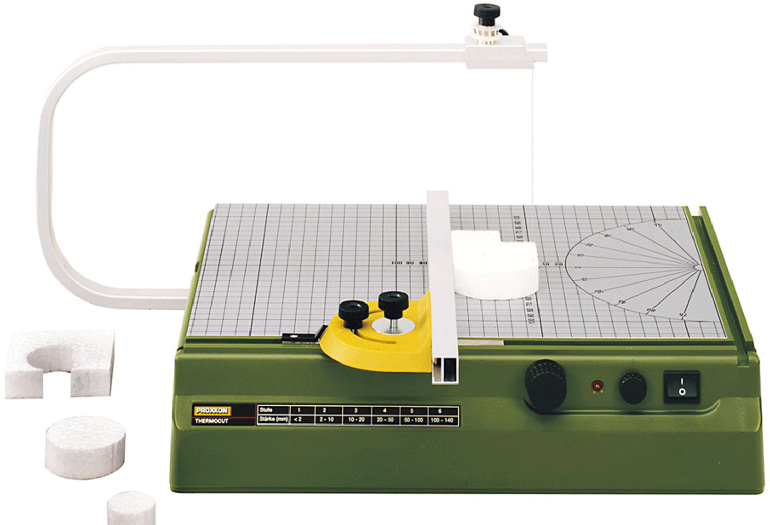 O PROXXON Cortador de Fio Térmico THERMOCUT 230/E é um aparelho de corte com fio quente de elevada precisão para arquitetura e modelismo, construção de protótipos, bem como para aplicações de design, decoração e artesanato.