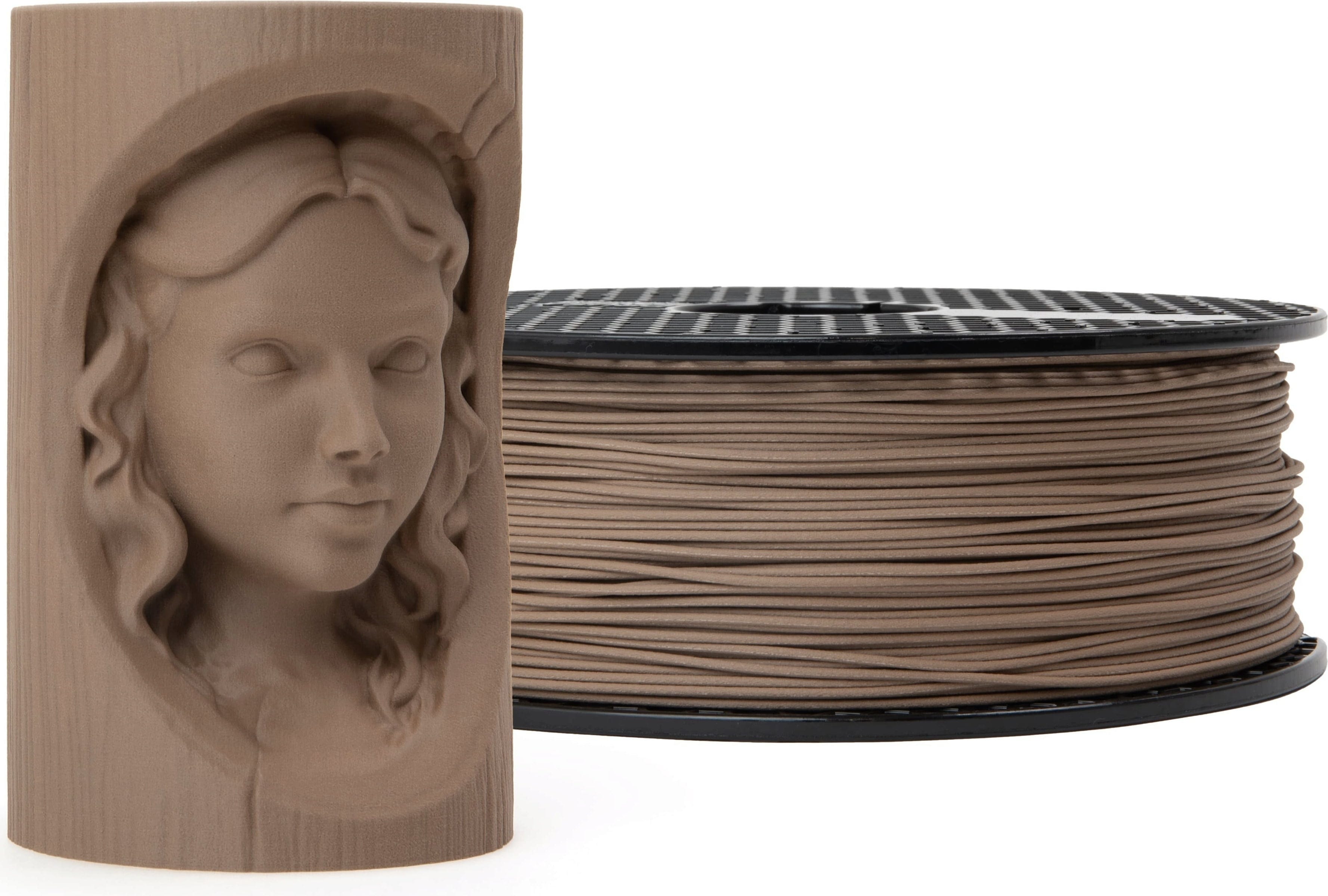 Filamento de madeira natural com um aspeto e toque reais em castanho chocolate