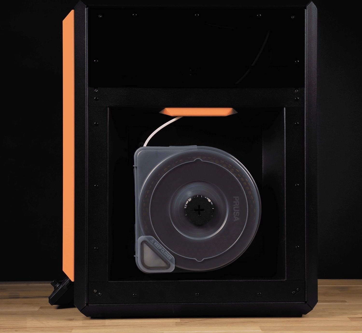 Podes imprimir diretamente a partir da Prusa USS Drybox. A saída PTFE integrada e selada permite uma alimentação de filamento com baixo atrito, enquanto o interior da caixa permanece hermeticamente fechado e protegido contra a humidade.