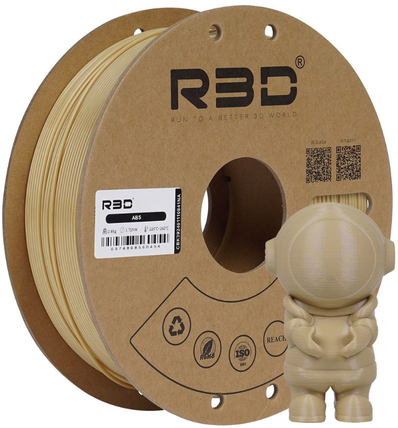 A temperatura de transição vítrea do R3D ABS é de cerca de 105° C, sendo significativamente mais alta do que a do PLA (60 – 65 °C).