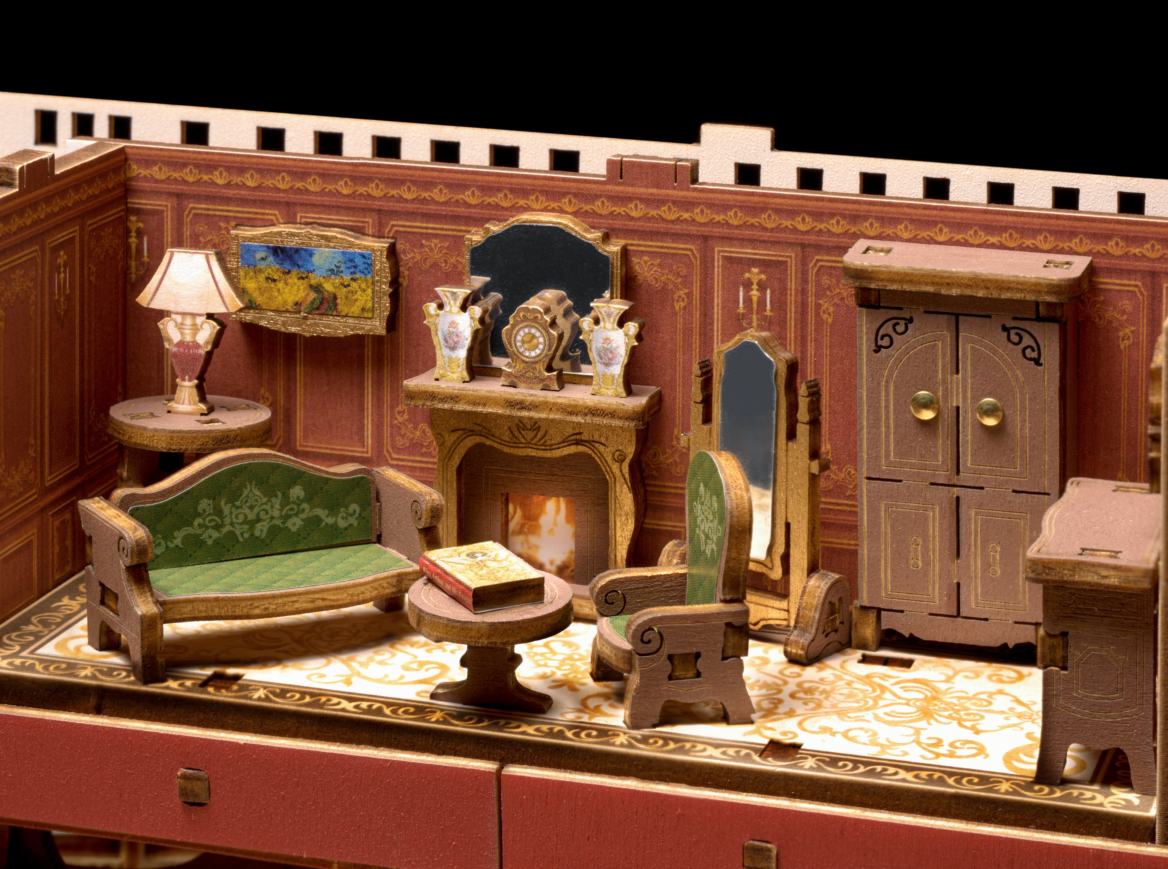 Arte de construção para casa: o kit em madeira é composto por 433 peças cortadas a laser com precisão, que graças ao engenhoso sistema snap-fit dispensam completamente cola. Cada peça encaixa de forma segura no seu lugar. Com um grau de dificuldade de 4 estrelas, a montagem oferece um desafio exigente, mas extremamente gratificante – ideal para construtores a partir dos 14 anos.
