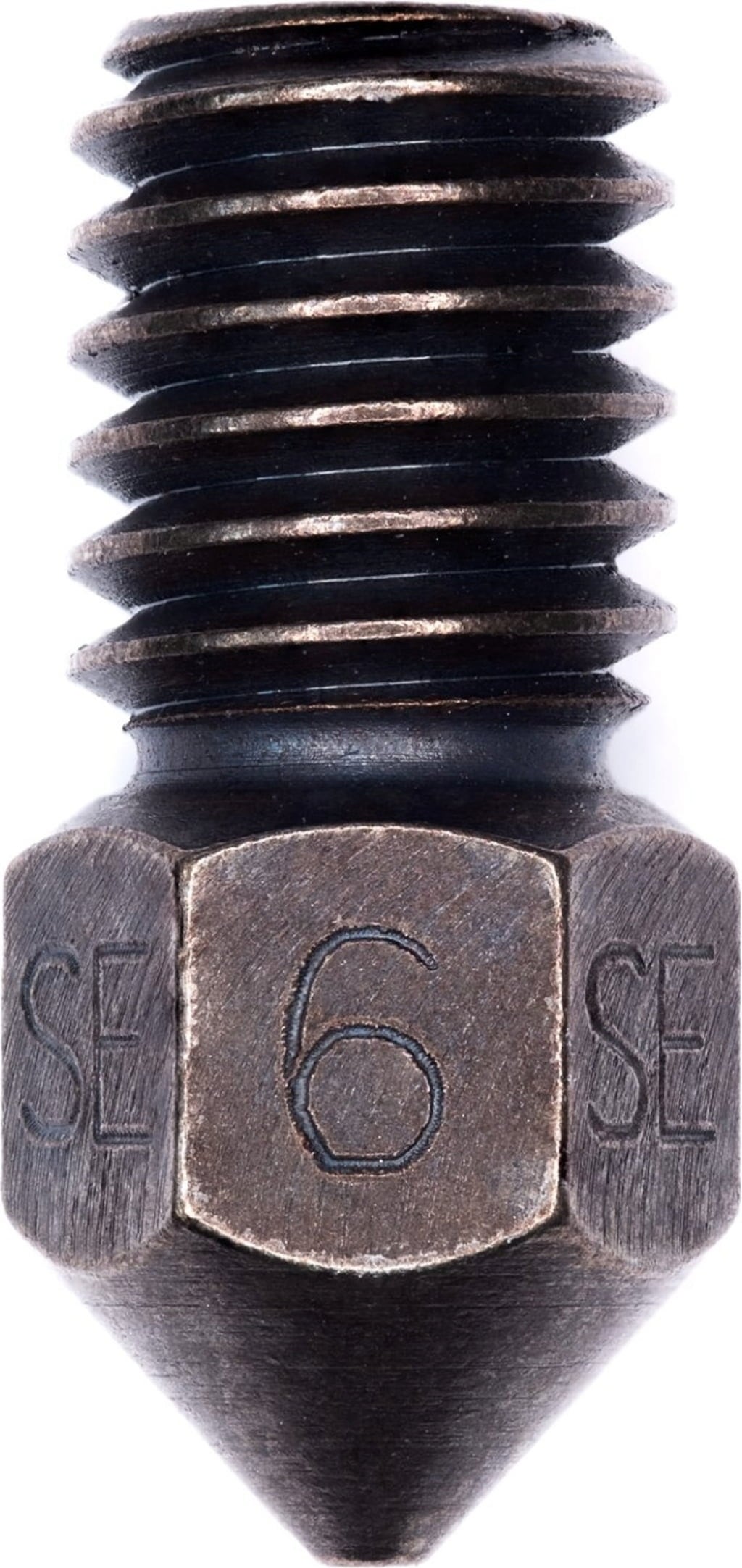 Os bicos GammaMaster® são fabricados a partir de uma liga endurecida para combinar a durabilidade de um bico resistente à abrasão com a eficiência térmica de um bico de latão convencional. Em comparação com os bicos de latão padrão, os bicos GammaMaster® têm 2,7 vezes a condutividade térmica, o que significa que não são necessárias temperaturas mais altas do bico ao imprimir com materiais abrasivos.