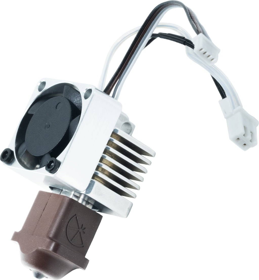Nota: em comparação com a versão anterior, a versão mais recente do hotend está equipada com uma ventoinha de arrefecimento com estrutura metálica.