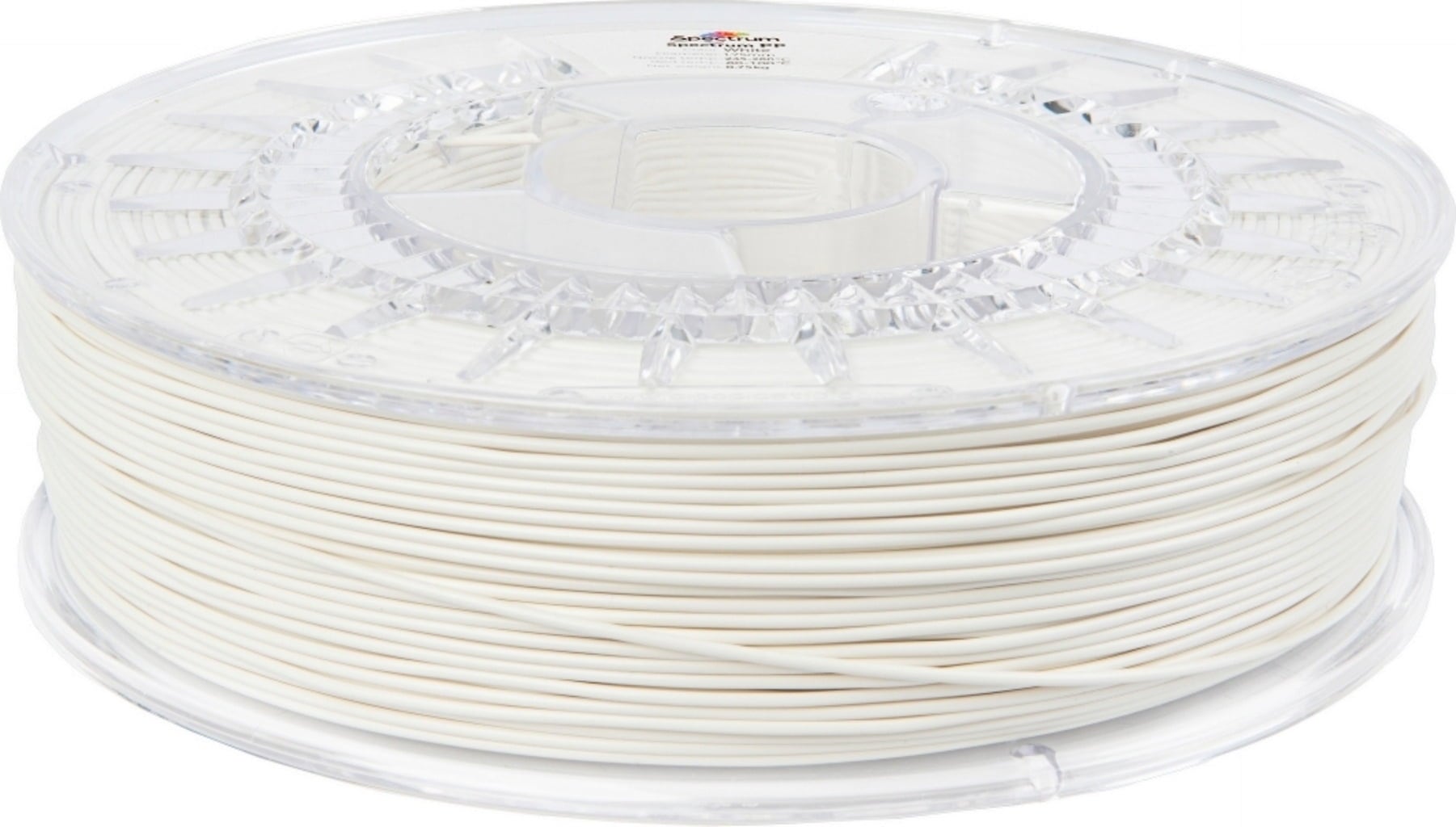 Spectrum PP é um filamento de polipropileno de alto desempenho, desenvolvido especialmente para aplicações em que são necessários baixo peso, elevada flexibilidade e excelente resistência química e mecânica. O material combina robustez estrutural com uma flexibilidade excecional e atinge alongamentos até 600% sem partir. Com uma dureza Shore de 50D, o Spectrum PP apresenta elevada resistência à abrasão, a fissuras e ao desgaste, oferecendo ainda resistência total à água, a detergentes e a muitos produtos químicos.