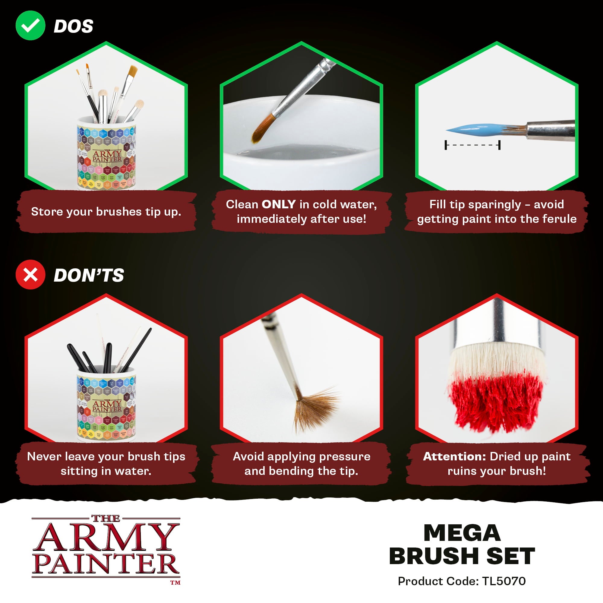 Com o Mega Brush Set da The Army Painter recebes a seleção completa de pincéis Wargamer num só conjunto! Equipados com a inovadora tecnologia Bionic Bristle, estes pincéis oferecem uma combinação excecional de precisão, estabilidade de forma e durabilidade. As fibras sintéticas de alto desempenho foram especialmente desenvolvidas para responder às elevadas exigências dos pintores de modelos e jogos de mesa, garantindo uma absorção de tinta controlada e traços precisos.