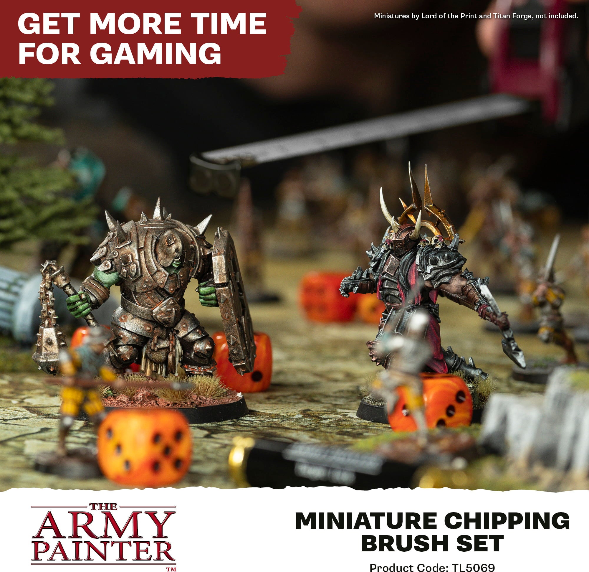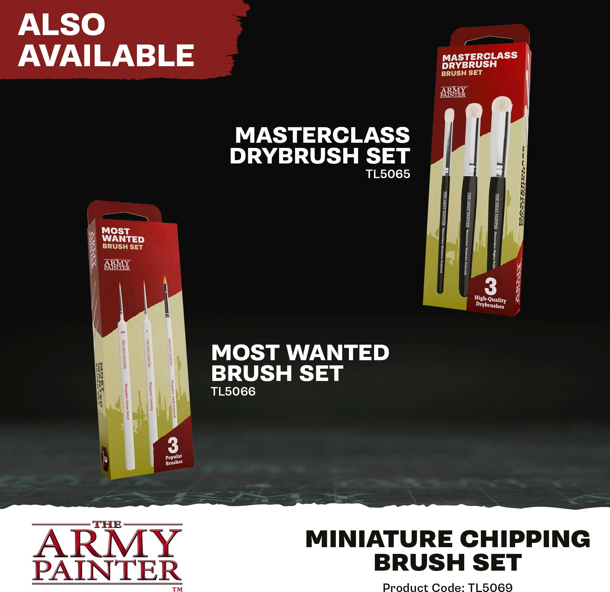 Com o Miniature Chipping Brush Set da The Army Painter levas as tuas miniaturas a um novo nível de detalhe! Este conjunto foi especialmente desenvolvido para criar marcas de uso e efeitos de desgaste realistas – desde riscos subtis a couro gasto ou chapas enferrujadas.