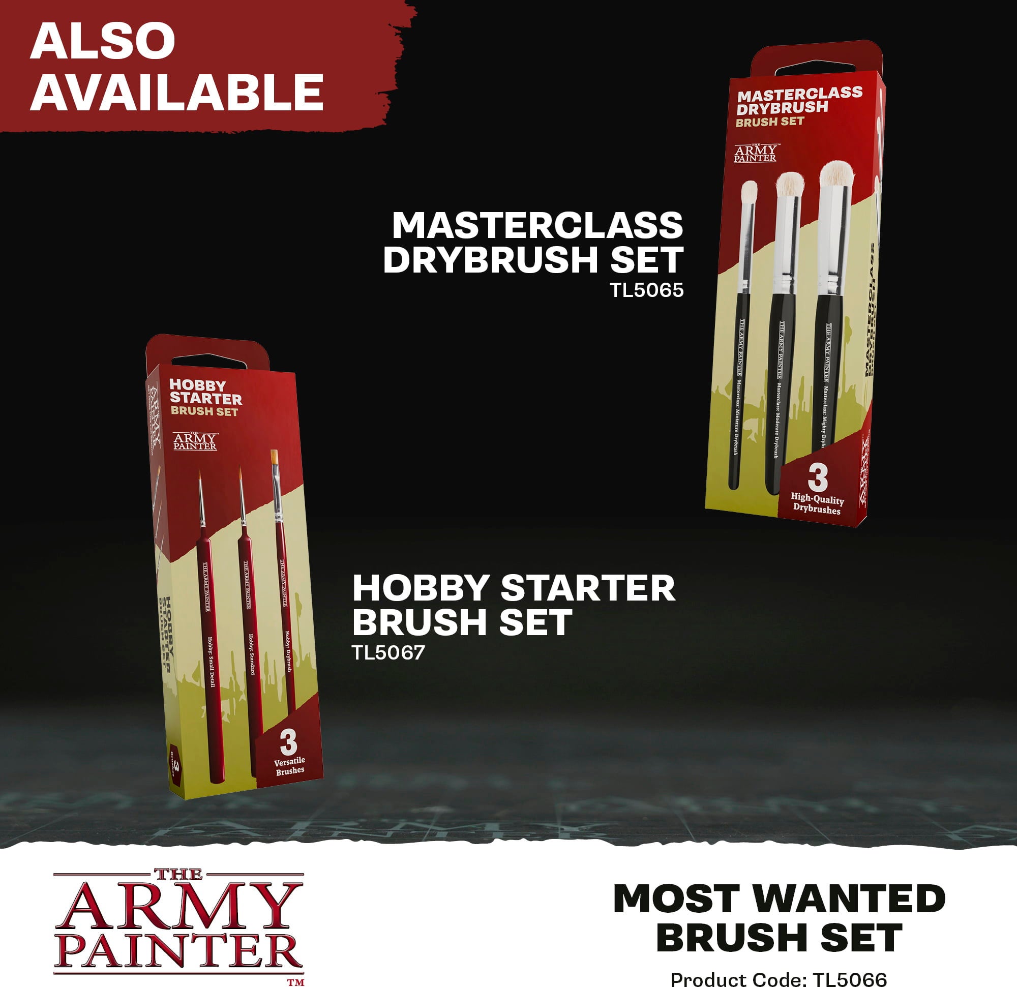 O Most Wanted Brush Set da The Army Painter é o companheiro ideal para qualquer pintor de miniaturas que queira levar as suas habilidades ao próximo nível! Este conjunto cuidadosamente selecionado inclui uma gama de pincéis, especialmente desenvolvidos para as diversas técnicas de modelismo – desde os detalhes delicados até as grandes áreas de cor.