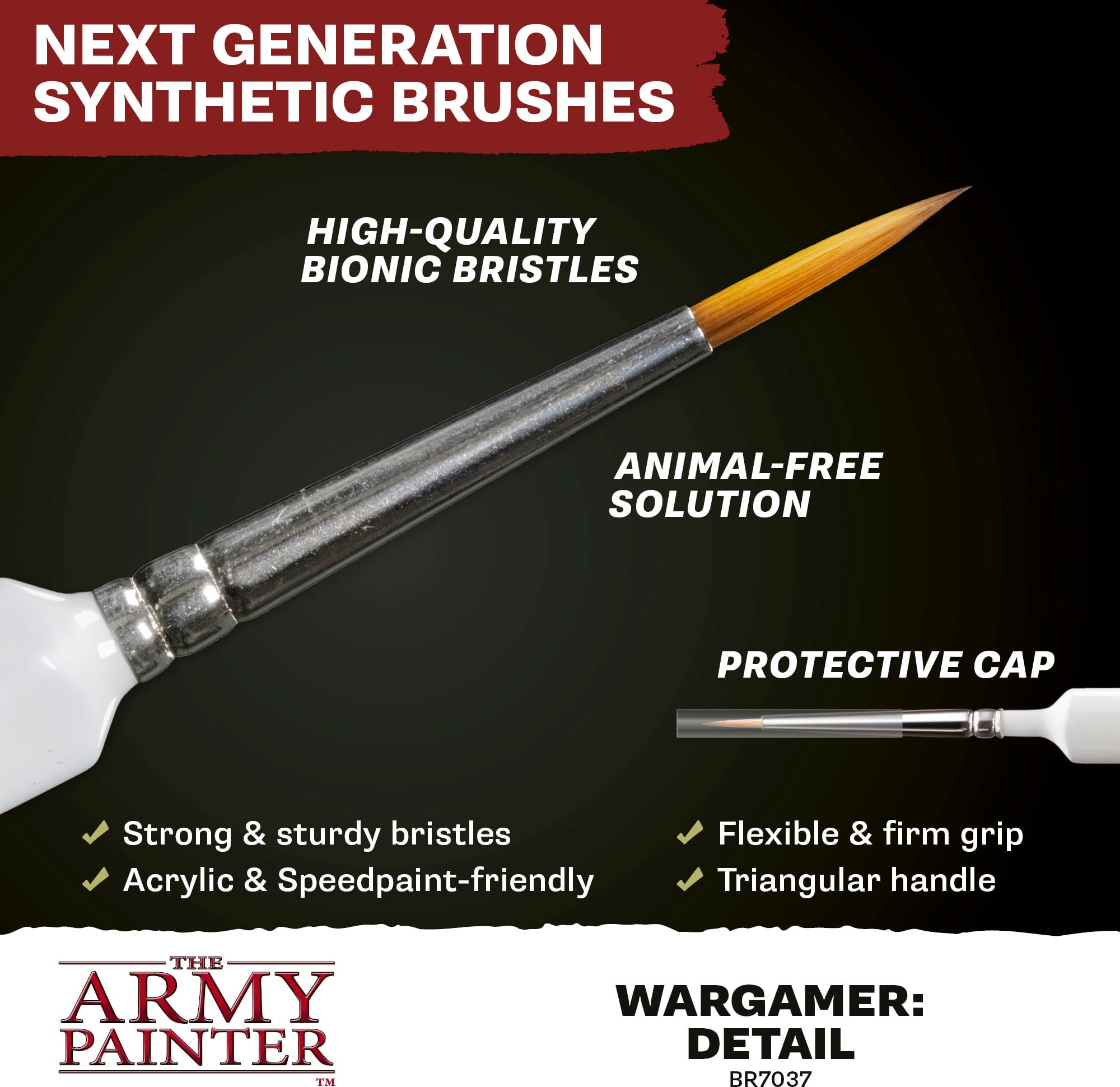 Os Wargamer Brushes da The Army Painter são as armas secretas que vão levar as tuas miniaturas a um novo nível. Estes pincéis de alta qualidade foram especialmente desenvolvidos para satisfazer as exigências dos entusiastas de wargames. Oferecem-te a precisão, controlo e durabilidade necessários para dar vida às tuas tropas – seja a pintar detalhes minuciosos ou grandes superfícies.